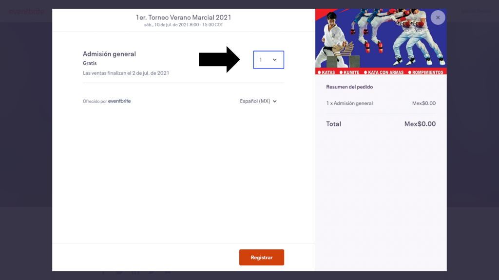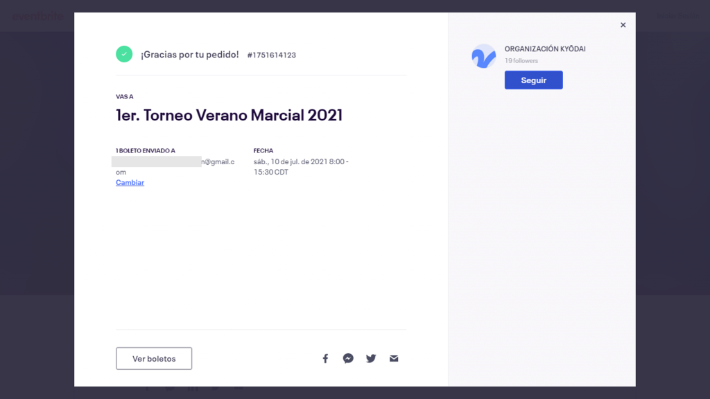Dar click a REGISTRAR en el botón color naranja. Así finaliza tu registro y recibirás el boleto en tu bandeja de correo electrónico que ingresaste en los datos anteriores.